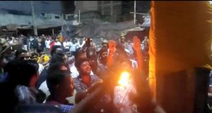 घटना के बारे में बता दें रामनवमी के झंडे को अपवित्र किए जाने के मुद्दे पर बीते रविवार की रात को दो गुटों के बीच जमकर पत्थरबाजी हुई… पुलिस ने भीड़ को तितर बितर करने के लिए लाठी चार्ज किया और आंसू गैस के गोले छोड़े…जिसके बाद हालात को काबू में किया जा सका…फिलहाल इलाके में धारा 144 लागू कर दी गई है… इस मामले में पुलिस ने 100 से अधिक लोगों के खिलाफ एफआईआर दर्ज की है और 55 लोगों को गिरफ्तार किया गया…