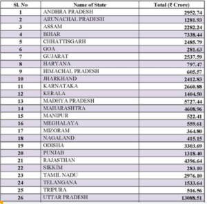 वित्त मंत्रालय के मुताबिक 28 राज्यों को नवंबर महीने के लिए कुल 72,961.21 करोड़ रुपये जारी किया है जिसमें उत्तर प्रदेश को सबसे ज्यादा 13088.51 करोड़ रुपये जारी किया गया है। इसके बाद बिहार की बारी आती है। बिहार को 7338.44 करोड़ रुपये उसके की टैक्स की हिस्सेदारी में से जारी किया गया है।