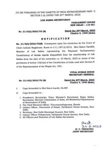 दरअसल, कानून कहता है कि 2 साल तक अगर किसी विधायक या सांसद को सजा होने पर उसकी सदस्यता रद्द हो जाएगी। इसके बाद सजा खत्म होने पर भी वह 6 साल तक चुनाव लड़ने पर अयोग्य माना जाएगा। ये नियम कोर्ट का फैसला आने के तुरंत बाद लागू हो जाता है। ये नियम जन प्रतिनिधित्व कानून 1951 की धारा 8 (3) के तहत लागू होता है। आपको बता दू की लोकसभा सचिवालय की तरफ से इस बारे में सात पंक्तियों की एक अधिसूचना जारी की गई है। इसमें कहा गया है कि सूरत के मुख्य न्यायिक मजिस्ट्रेट की अदालत की तरफ से दोषी करार दिए जाने के बाद केरल के वायनाड से लोकसभा सदस्य राहुल गांधी को लोकसभा की सदस्यता से अयोग्य किया जाता है। यह अयोग्यता उन पर दोष साबित होने के दिन यानी 23 मार्च 2023 से लागू रहेगी। यह निर्णय संविधान के अनुच्छेद 102 (1) (e) के प्रावधानों और जनप्रतिनिधित्व कानून 1951 की धारा आठ के तहत लिया गया है।