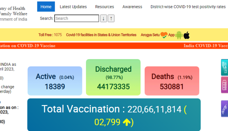 वैक्सीनेशन की बात करें तो स्वास्थ्य मंत्रालय की वेबसाइट पर दी गई जानकारी के मुताबिक देशव्यापी टीकाकरण अभियान के तहत दो साल में 220,66,11,814 लोगों ने वैक्सीन ले ली है। बीते 24 घंटे में 2,799 वैक्सीन की डोज दी गई है।