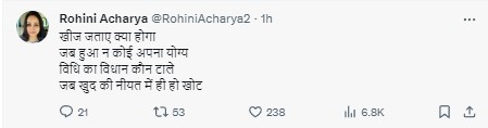 रोहिणी के सिलसिलेवार तरीके से किए गए तीन पोस्ट ने बिहार की राजनीति में बखेड़ा तो जरूर खड़ा कर दिया है। और अटकलों का जो बाजार है उसको तो पूरी तरह से गर्म कर दिया है।