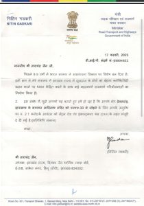 केंद्रीय मंत्री नितिन गडकरी ने झारखंड दिगंबर जैन धार्मिक न्यास बोर्ड के अध्यक्ष ताराचंद जैन को पत्र भेजकर यह जानकारी दी है।