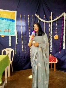 विशिष्ट अतिथि कला केंद्र की प्राचार्या लिली मुखर्जी थी। मुख्य अतिथि डॉक्टर शिशिर सोमवंशी थे। संचालन डॉक्टर रजनी शर्मा चंदा ने किया। कार्यक्रम की शुरुआत मां सरस्वती के चित्र पर पुष्प अर्पित कर सीमा सिन्हा मैत्री ने मां शारदे की वंदना से की गई।