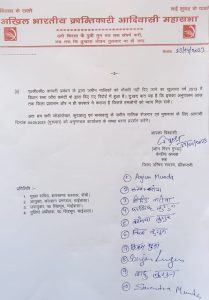 राज्यपाल एवं राज्य के मुख्यमंत्री को पत्र लिखकर आदिवासी भूस्वामियों को न्याय दिलाने की मांग