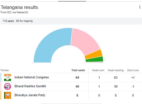 हैदराबाद : चार राज्यों के चुनाव नतीजों में कांग्रेस को बस झटका ही लगा है। चार में दो राज्य कांग्रेस के हाथ से निकल गए। लेकिन किसी राज्य ने कांग्रेस की इज्जत को बचायी है तो वो है तेलंगाना। यहां पर कांग्रेस ने प्रचंड जीत हासिल करने की ओर अग्रसर है और बीआरएस को सत्ता से बाहर का रास्ता दिखाने की ओर। केसीआर जिनके खिलाफ कई आरोपों को लगाकर कांग्रेस इस बार पूरी तरह से जोरदार प्रचार अभियान उनके खिलाफ चलाया था, उसका परिणाम आज कांग्रेस को मिल गया है। इस जीत का सेहरा जितना कांग्रेस के केंद्रीय नेतृत्व के सर पर सज रहा है, उतना ही तेलंगाना कांग्रेस के चीफ रेवंत रेड्डी को भी।