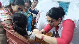 नैहाटी (प.बंगाल) । शनिवार को नैहाटी आनंद स्वरूप हिंदी हाईविद्यालय में एमआर (रूबेला) वैक्सिनेशन कैम्प का आयोजन नैहाटी म्युनिसिपालिटी के तरफ से किया गया।