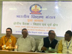 राँची : भारतीय शिक्षण मंडल के युवा आयाम के बिहार एवं पूर्वी क्षेत्र की क्षेत्रीय बैठक रविवार को राँची के सरला बिरला विश्वविद्यालय के सभागार में सम्पन्न हुई। समारोह का प्रारंभ संगठन गीत, ध्येय श्लोक, ध्येय वाक्य, प्रार्थना एवं कल्याण मंत्र के साथ हुआ। इसके उपरांत भारतीय शिक्षण मंडल के झारखंड प्रांत के अध्यक्ष रंजीत मिश्रा ने स्वागत उद्बोधन दिया तथा सम्मानित अतिथियों को अंग्वस्त्र एवं श्रीफल देकर स्वागत एवं सम्मानित किया। बैठक के अवसर पर मुख्य अतिथि के तौर पर आमंत्रित आशुतोष द्विवेदी ने भारत, भारतीय और भारतीयता पर अपने बौद्धिक विचार को बैठक में रखा। इसके साथ ही उन्होंने यह भी कहा कि विचारों के मंथन से जो नवनीत निकलता है उसे युवाओं तक पहुँचाने का कार्य करना है।